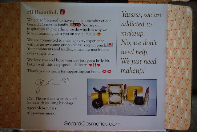 The package arrived in a simply black box with Gerard Cosmetics on the ends. Once opened the inside looked like what is pictured above.